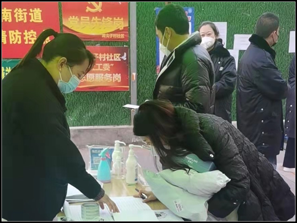 穿上蓝马甲、手持测温枪、搭建临时帐篷、布置检测场地、现场消杀、维持秩序、协调服务……迎着寒风,苗承君又开始了每一天的日常工作。“疫情面前,我是一名党员。作为城关镇负责人,我必须冲锋在前。”苗承君介绍, 连日来,镇村社220名党员志愿者,每天