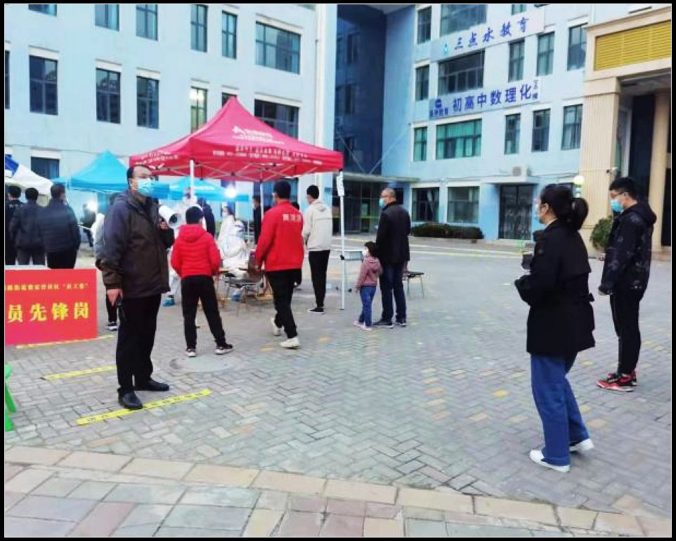 中国甘肃在线安宁讯 誓言无声,使命必达。安宁堡街道金安东社区“社工委”从严从细落实防控措施,充分发挥社区“社工委”和基层党组织的作用,积极组织党员干部、社区工作者、志愿者,加强网格化管理,引导居民主动配合做好核酸检测集中采样工作,筑牢群防群