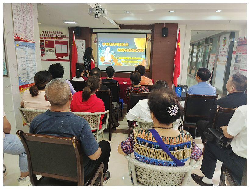 中国甘肃在线兰州讯 在中秋佳节来临之际,兰州市城关区雁南街道天庆嘉园社区9月17日下午,在社区综合活动室开展以“中秋佳节话团圆 禁毒知识进万家”为题的中秋主题活动。街道办事处副主任在现场通过PPT演示的形式,向前来参加活动的辖区居民介绍什