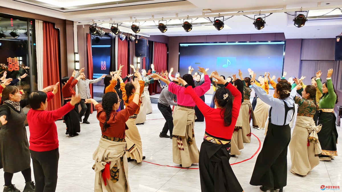 中国甘肃在线宕昌讯 12月2日晚,宕昌县鸿雁大酒店内却暖意融融、欢歌如潮。宕昌县轻舞飞扬锅庄舞健身团队举办“锅庄跳出新生活,娥嫚舞出新风尚”团建文艺演出活动,文艺志愿者以舞传情,用灵动姿态勾勒出羌藏民俗的独特魅力,彰显着群众昂扬向上的文明风