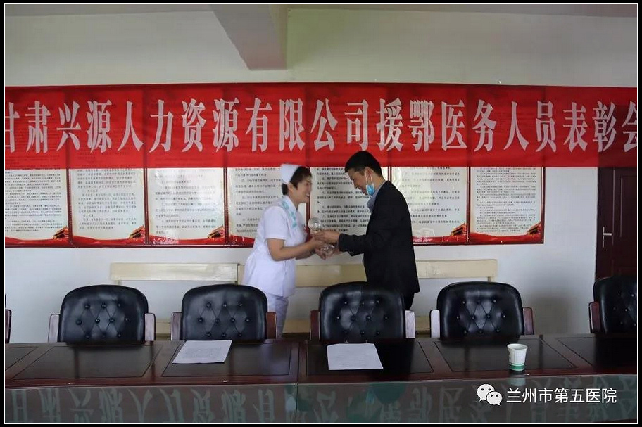 5月13日,甘肃兴源人力资源有限公司表彰慰问了兰州市第五医院援鄂护师禄文娟,并送上5000元的慰问金及荣誉证书和奖杯。禄文娟表态发言中说,非常感谢甘肃兴源人力资源有限公司和兰州市第五医院领导对她的关心和帮助,支援武汉她只是做了一名医护人员应