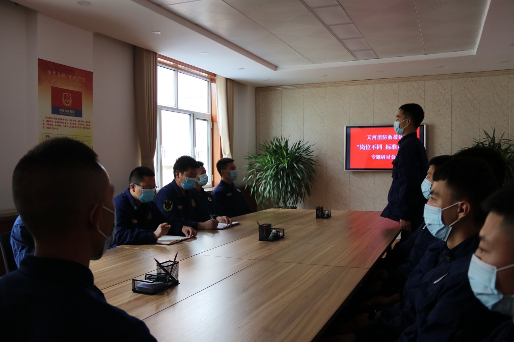 为进一步推进专职队员“四查四改四提升”百日教育整顿活动开展,不断加强和推进队伍正规化、专业化、职业化管理水平。4月10日,天河消防救援站组织全体专职队员围绕“岗位不同标准相同”开展专题讨论活动。  活动中,天河站全体专职队员首先认真思考回顾