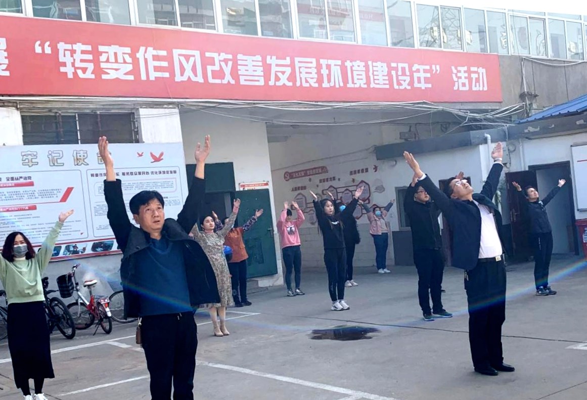 “原地踏步走,一二三四……”4月14日上午10点30分,伴随着第九套广播体操音乐节奏的响起,兰州市西固区西柳沟街道全体干部职工在院内开展工间操活动,为繁忙的工作“添点氧”,不断提升精神“正能量”。为深入开展全民健身运动,提高干部职工自身免疫