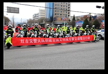 3月18日,红古交警联合红古区文明办在辖区举行“创建全国文明城市暨交通整治行动”启动仪式,在辖区创建“平安路”交通文明示范路和“区政府十字”交通文明示范岗。这是该区为推进全国文明城市创建工作,培育和树立文明交通示范典型,改善交通秩序,提升城
