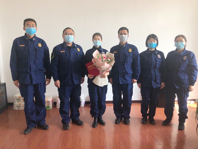 阳春三月,百花齐放,春意盎然!为进一步激发大队全员女消防文员履职尽责、爱岗奉献的工作热情,在国际“三八”妇女节来临之际,按照支队党委部署,3月6日,清水大队党支部开展“三八节送奖到岗”活动,为全体女文员送上节日的祝福。首先大队长杜鹏代表清水