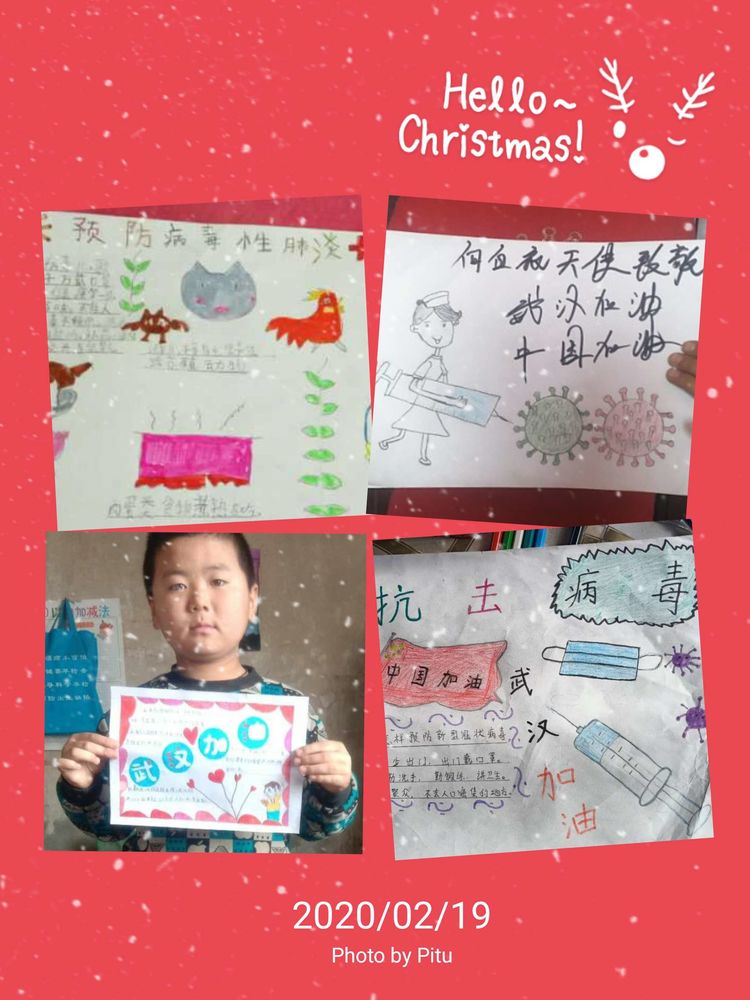 我们是四道沟小学的学生,我们为祖国加油!疫情期间不出门,不给祖国添麻烦,争做疫情宣传小明星,众志成城,抗击疫情!二年级翟思怡宣传预防病情,从我做起,为白衣天使加油!!二年级杨梦涵为中国加油,武汉加油!!!五年级学生潘佳庆说:众志成城,共同防
