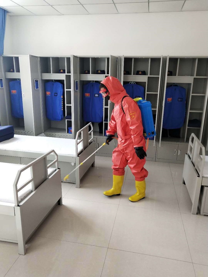 为切实保障全体队员的身体健康,有效做好疫情防控工作。为队员的训练、学习、工作营造良好的生活环境,连日来,张家川大队持续组织对营区进行全面地消毒。 大队根据实际情况精心部署,重点对办公区、宿舍、走廊、大厅、哨房等人员集中且流动量大,易滋