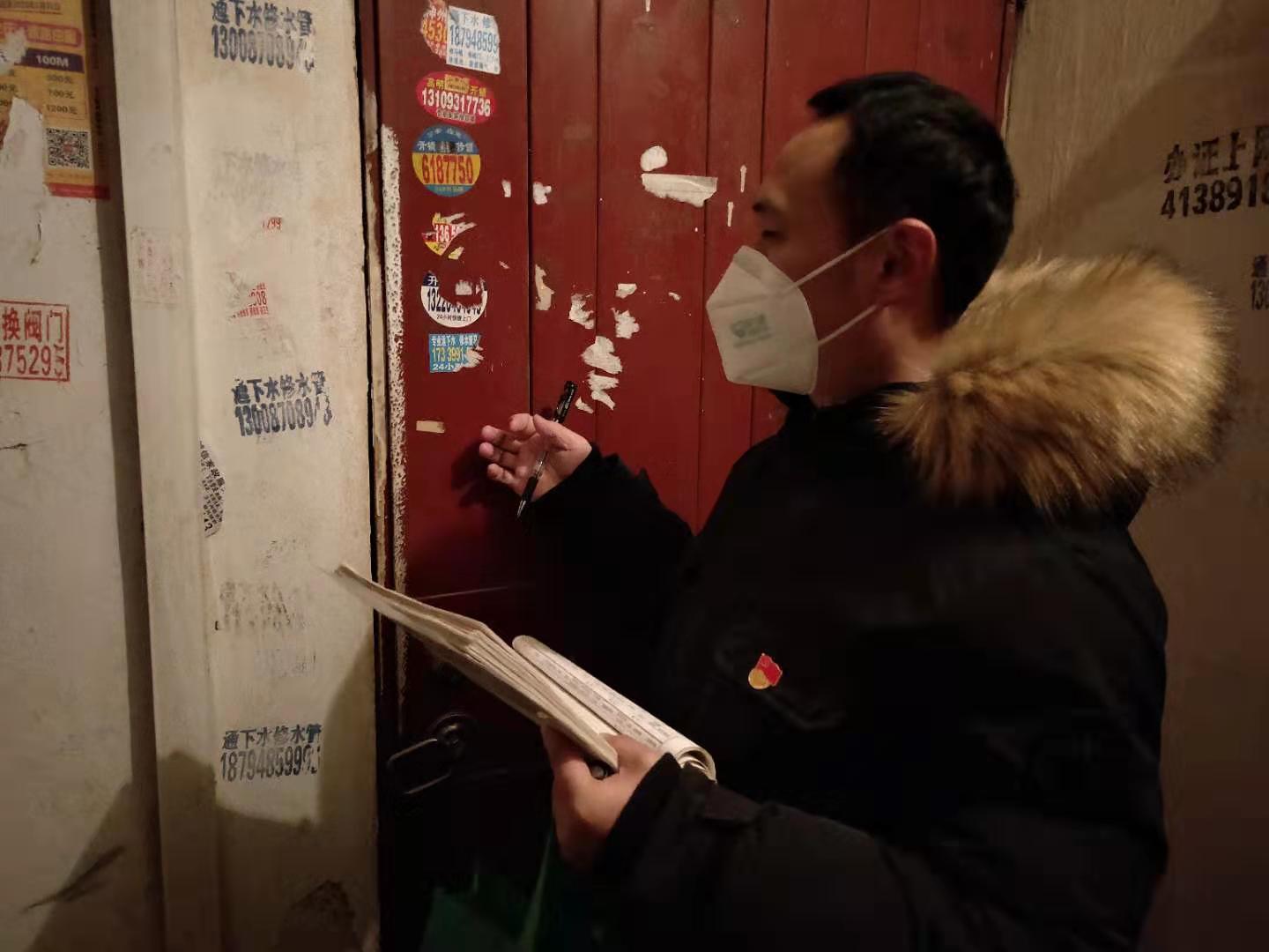 (周帅领在入户)火车站街道红三村社区的周帅领是一名残疾专干,他天生视力低,却依然活跃在防疫一线。他和社区其他工作人员每天入户登记辖区外地返兰人员,摸排外地车辆,劝导辖区小旅馆、网吧等娱乐场所关停,宣传和发放疫情科普知识册,夜间值守劝返点卡口
