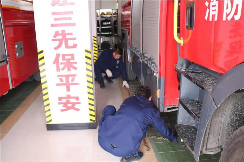 为切实加强雨雪天气下消防救援队伍执勤战备与灭火救援能力,确保行车安全,使降雪天气不影响中队正常灭火救援工作,切实做好执勤车辆安全工作,预防车辆安全事故发生,近日,甘谷中队组织指战员为执勤车辆加装防滑链,确保行车安全。 防滑链的作用是在雪天路