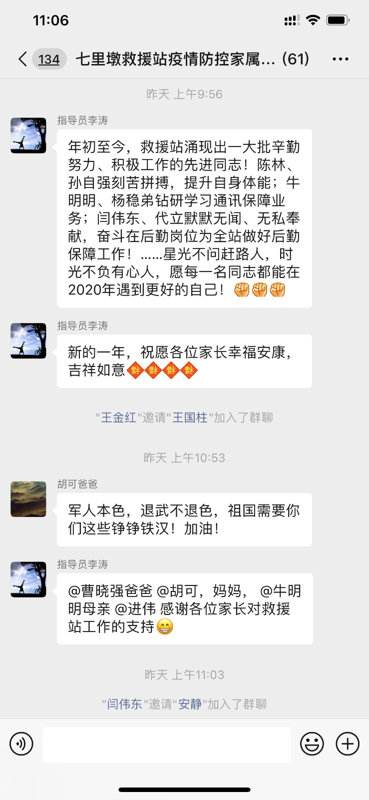 为了使消防员家属能直观的、真实的了解消防队员生活,掌握队员日常疫情防控,达到“第一时间”的交流和沟通目的,七里墩消防创建“指战员+家属”共育共教联络机制,通过建立消防员家属微信群,邀请家人进群走近消防、了解消防,让消防家属沟通无距离。