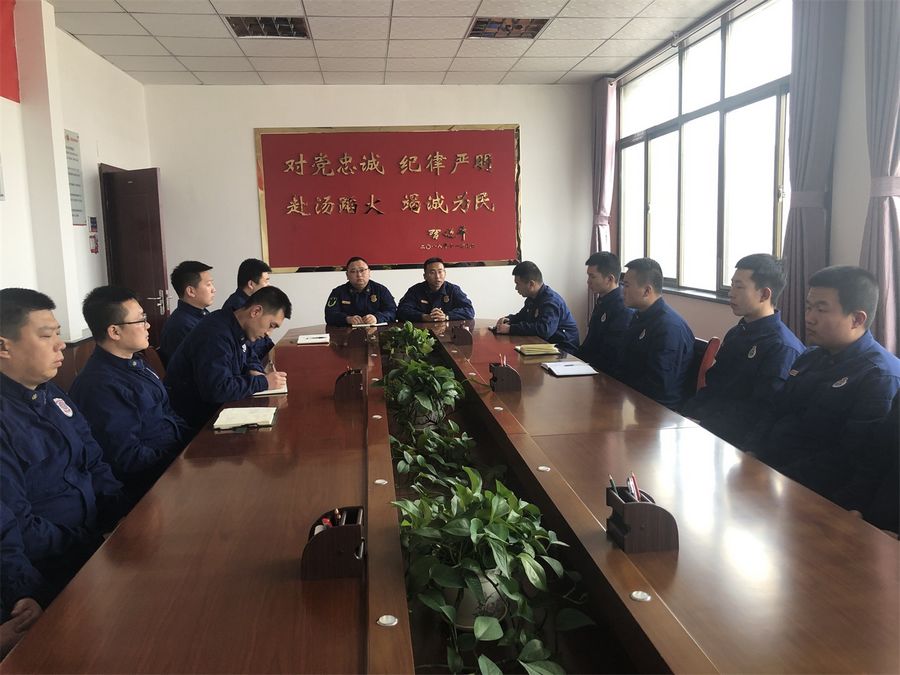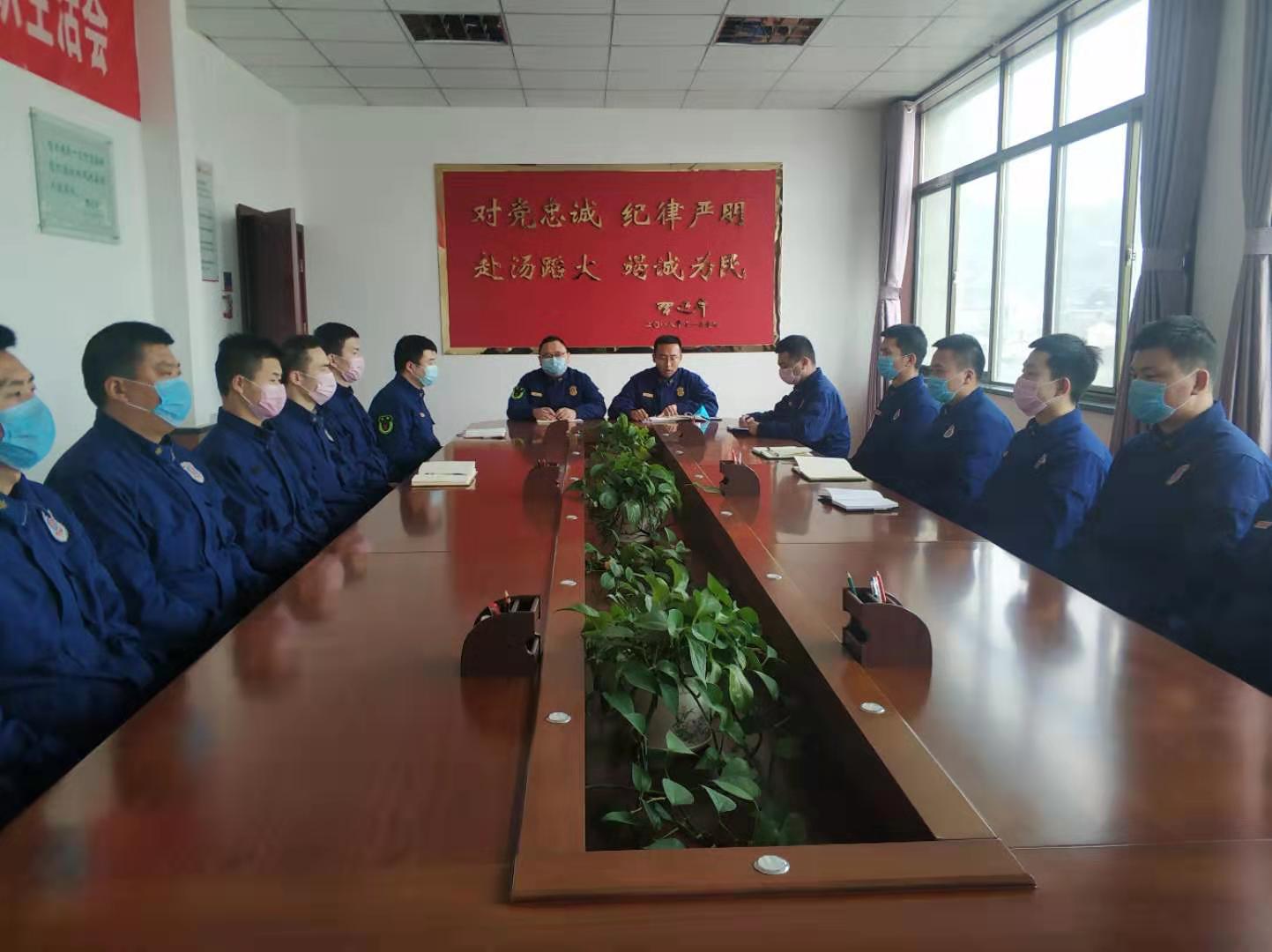 为认真贯落实支队行政例会会议精神,切实做好当前各项重点工作,2月1日下午,清水大队组织大、中队全体干指战员召开会议,传达学习支队行政例会会议精神,部署近期重点工作。会上,大队长杜鹏首先传达支队行政例会及支队领导讲话精神,对支队行政例会上关于