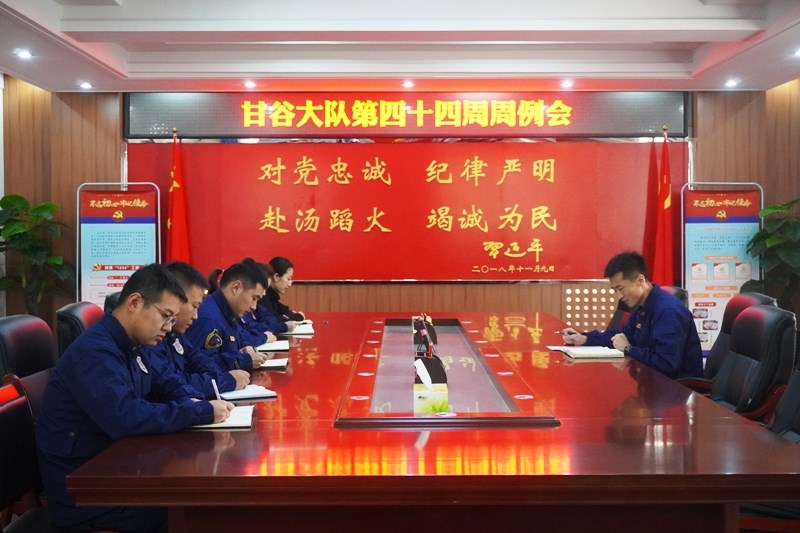 近日,甘谷大队召开全年第44周周例会,会议由大队长牛翔宇主持,大中队全体在位干部及各小组组长参加会议。  会议首先对照全年重点工作任务及目标责任书工作完成情况进行梳理总结并作出具体安排,就进一步做好近期重点工作,会议要求:一是全力做
