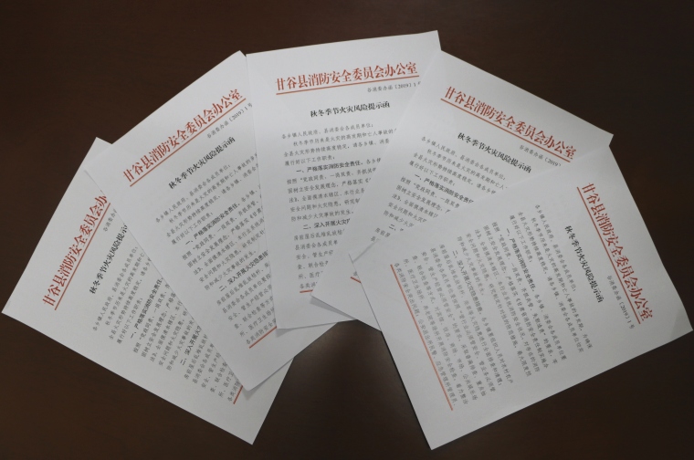 • [天水]甘谷县消委会办公室发送秋冬季节火灾风险提示函