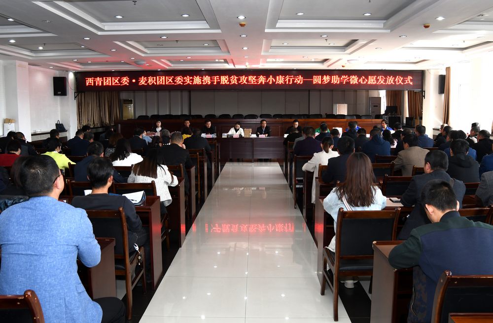 在第六个“全国扶贫日”前夕,10月16日,共青团麦积区委、共青团西青区委举行实施携手脱贫攻坚奔小康行动“圆梦助学·微心愿”发放仪式。区委常委、副区长高福光出席发放仪式。10月1日当天,共青团麦积区委、共青团西青区委联合在网上发起“圆梦助学