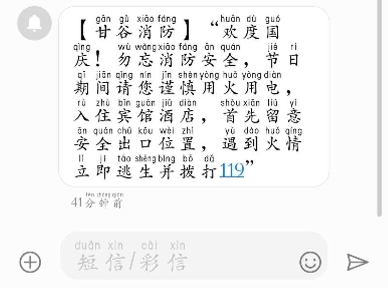 • [天水]甘谷消防:推送提示短信助阵“国庆节“期间消防安全宣传