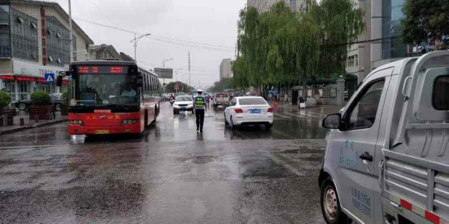 2019年8月2日下午,天水市麦积区出现持续降雨,导致部分路段积水严重,影响道路正常通行,造成局部区域交通拥堵。麦积交警城区二中队迅速启动“恶劣天气应急预案”,由中队长霍军军带队,组成特勤小组、应急小组、巡逻小组。巡逻小组对辖区道路实施不