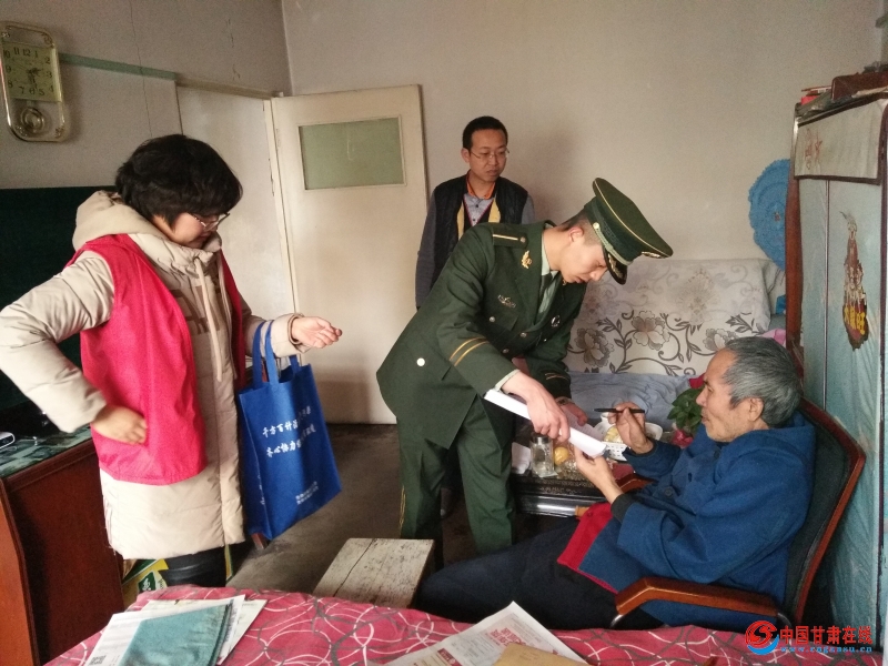 中国甘肃在线讯(通讯员:杨帆)拿起钢枪,他们守卫国家安宁;假期归乡,他们用行动为家乡父老送上温暖。2018年寒假期间,来自甘肃省的10名武警学院学员自发组成社会服务团队,来到兰州城关区兰玻西社区开展志愿服务