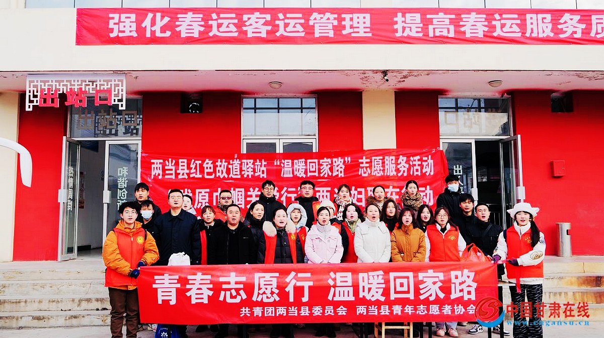 中国甘肃在线两当讯 为切实加强对外出务工返乡青年的关心关怀,充分发挥两当县红色故道驿站多功能服务群众的作用,1月25日,团县委依托城关镇红色故道驿站,联合县总工会、县妇联,组织青年志愿者开展“青春志愿行 温暖回家路”志愿服务活动。活动中,青