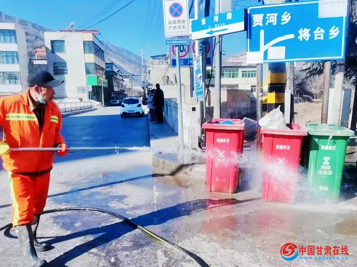 中国甘肃在线宕昌讯 拉网式“大清洁、大清除、大整治”,全方位消除盲点、解决难点、打造靓点……春节临近,宕昌县开展清洁家园环境卫生整治月活动。提升城市环境卫生水平,创造美好舒适生活环境。记者在新城区主街看到,县环卫所组织环卫工人,大型洗路车,