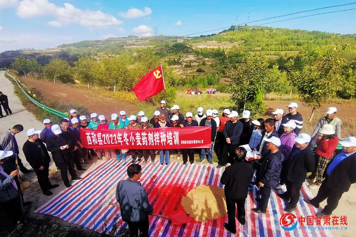 中国甘肃在线西和讯(通讯员 巩凡)为抢抓农时,西和县全面落实好23.9万亩小麦秋播任务,加快2023年基层农技推广体系改革与建设项目小麦产业年度主推技术落实落地。连日来,西和县农技、农机中心、种子管理站在兴隆镇牟山村开展小麦秋播主推技术培训