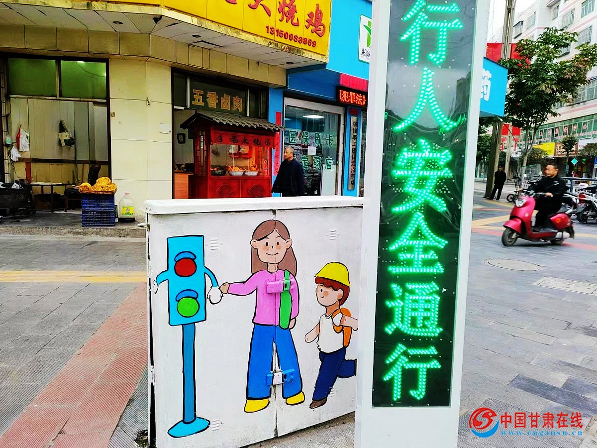 中国甘肃在线西和讯(通讯员:周密 李娟)近日,在西和县街边出现了一道亮丽的风景线,路边配电箱换上彩绘新衣,一幅幅的交通安全宣传画手绘在上面,交通安全警示语句与形象的手绘漫画相互衬托,构建了一副别样的风景,冰冷的配电箱变成了温暖的交通安全“宣