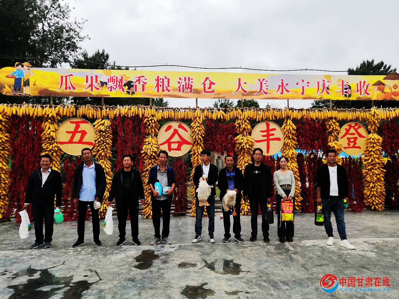中国甘肃在线徽县讯(通讯员 马育江)金秋时节,硕果累累,9月21日,2023年“中国农民丰收节”徽县永宁镇分会场“晒秋·乐享丰收”活动在岳王村举行。今年丰收节以“庆丰收 促和美”为主题,通过农特产品展销、手工艺品展、趣味运动会、表彰、分红、