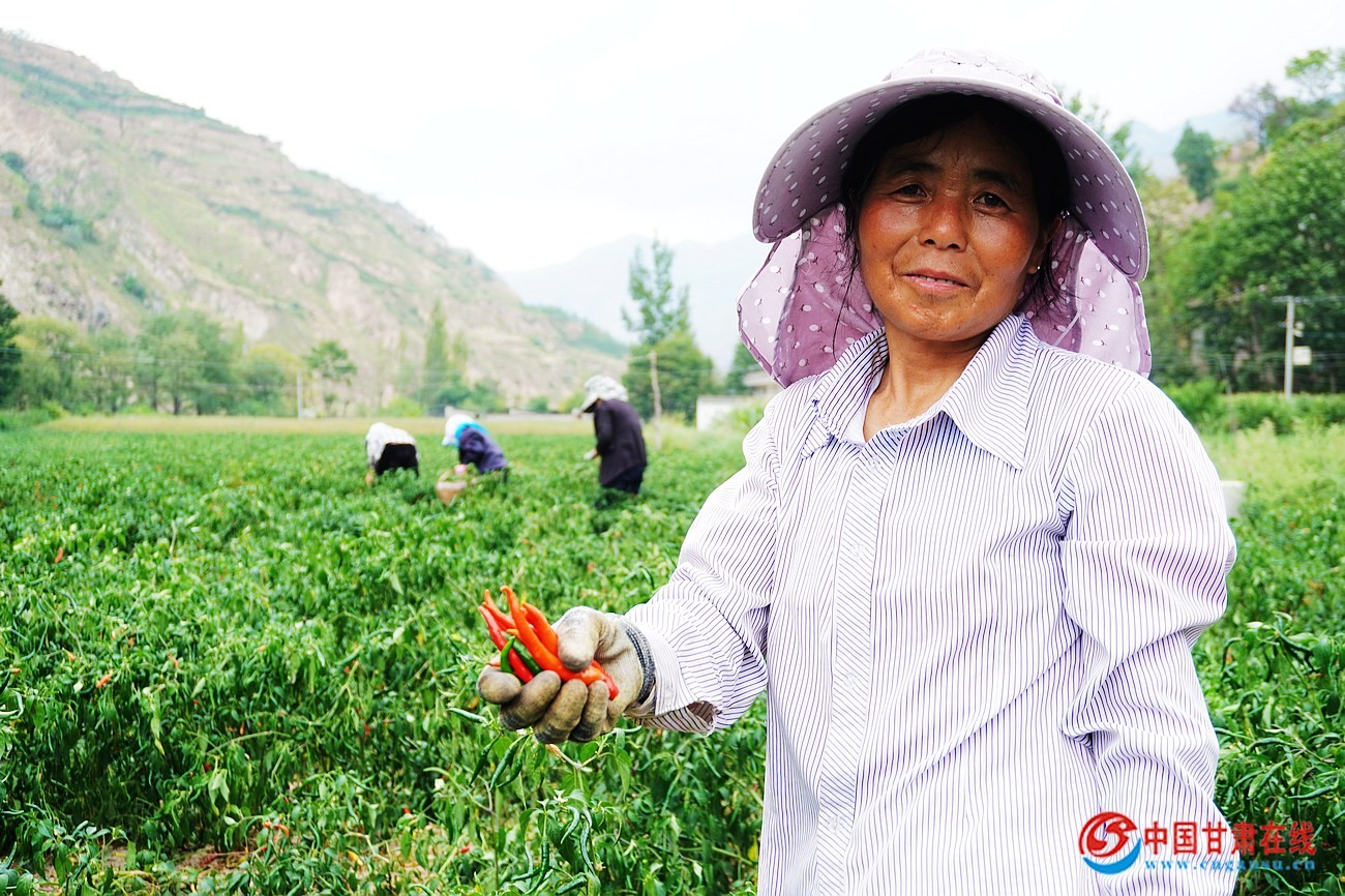 中国甘肃在线西和讯(通讯员 巩凡)眼下正是辣椒丰收、上市的季节。走在西和县大桥镇各村的田间地头,一个个饱满的红辣椒挂满枝头,长势喜人,翠绿或火红的辣椒映红了工人的笑脸,工人忙着采摘、装框、运输,现场一派丰收喜悦的丰收景象。走进辣椒种植地,映