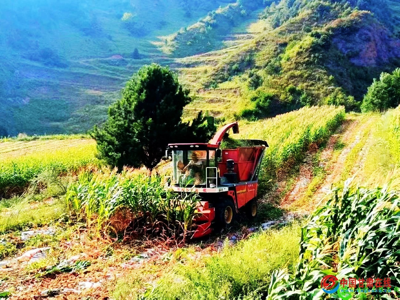 中国甘肃在线西和讯(通讯员 巩凡)眼下,正是青贮玉米成熟收获季节。西和县石堡、马元、六巷等乡镇玉米种植基地成片的青贮玉米长势喜人,青贮饲料收割机在田间来回作业,一排排玉米秸秆被快速切割、粉碎,运输车紧跟收割机。为牲畜越冬备足“口粮”,田间地