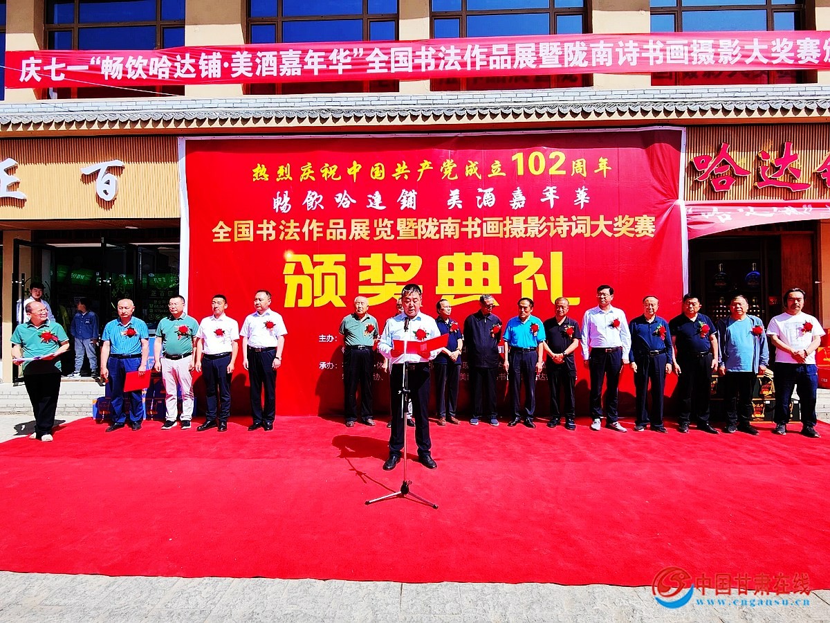 中国甘肃在线宕昌讯6月30日,庆七一“畅饮哈达铺•美酒嘉年华”全国书法美术摄影诗词大奖赛颁奖仪式在宕昌县哈达铺镇举行。回顾中国共产党成立102年的光辉历程,献礼建党102周年。哈达铺是中国历史文化名镇,是国家4A级景区,是中国工