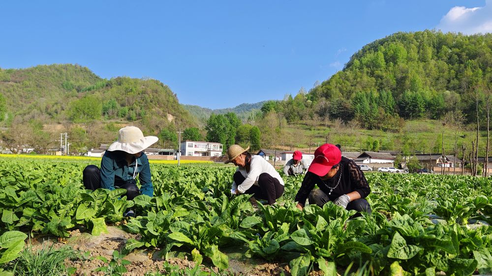 4月下旬,走进陇南市徽县榆树乡杨河村百亩莴笋种植基地,一片片绿油油的莴笋根粗叶茂、长势喜人,群众正在进行丰收前的管护,忙碌的身影勾勒出一幅“人勤地生金”的生动图景。(高琼)