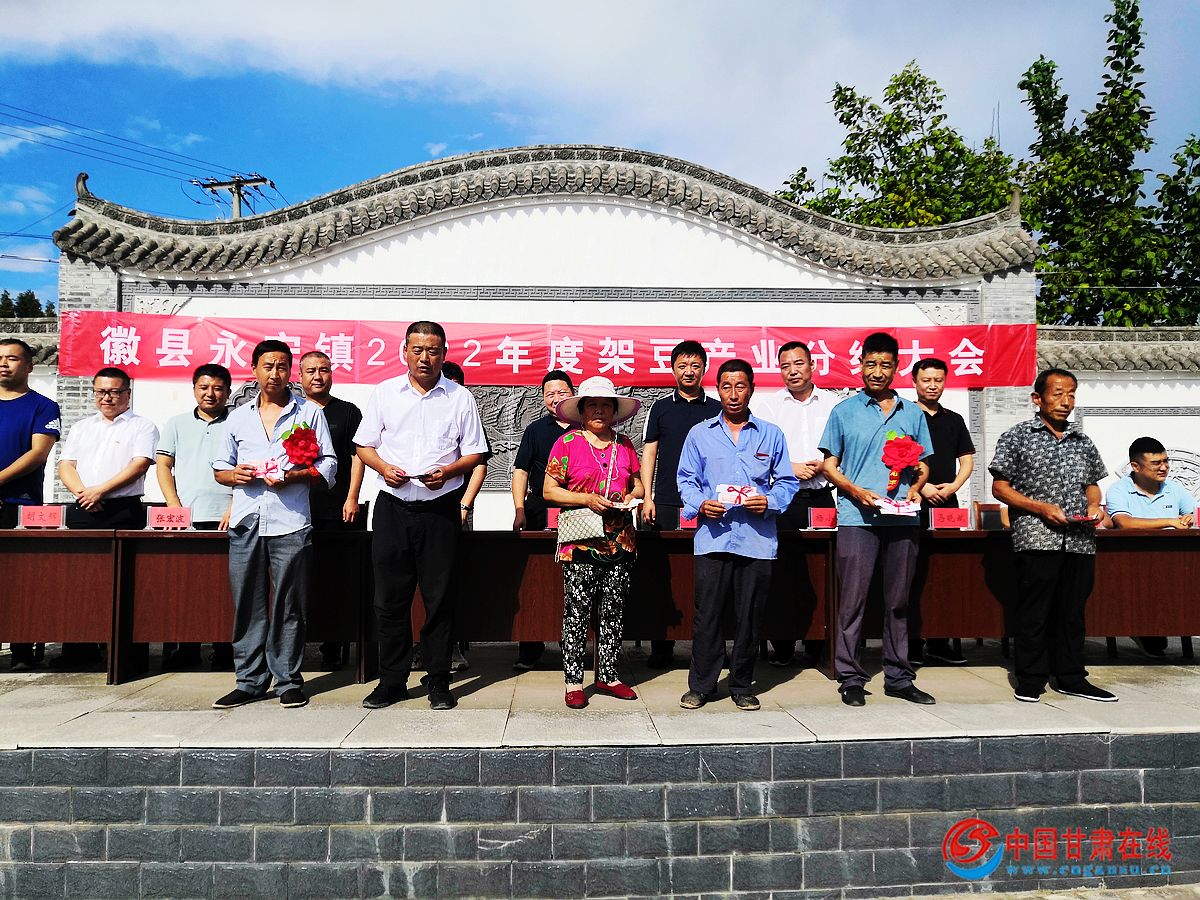 中国甘肃在线徽县讯(通讯员 马育江)“党的扶贫政策真是好,不仅让我们能享受到政府各项政策优惠,还可以领取分红。”郭志杰拿着1000元分红,感激之情溢于言表。8月4日下午,陇南徽县永宁镇架豆产业2022年度分红大会在庙湾村党群服务中心广场举行