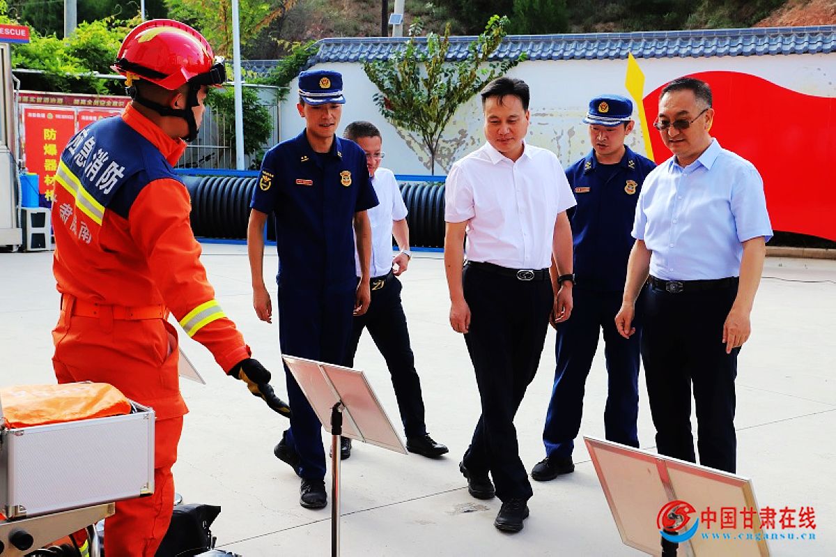 中国甘肃在线礼县讯 在8月1日下午, 礼县委常委、常委副县长王瑞携紫金矿业慰问礼县大队全体消防救援人员,为消防指战员送来慰问金并致以节日的祝福和诚挚的问候。王瑞一行参观了营区各库室、及整建制操法展示,详细了解队伍执勤训练、正规化建设和各项保
