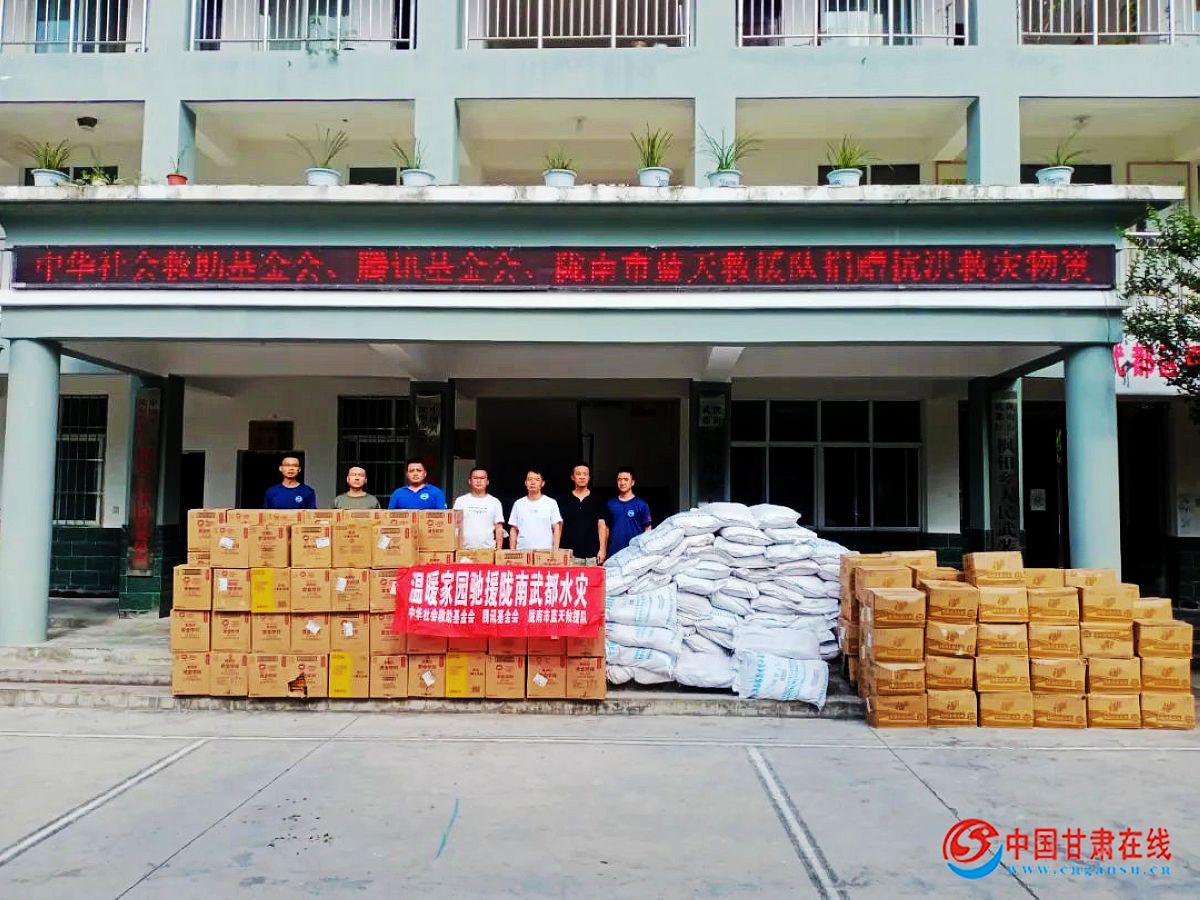中国甘肃在线武都讯(通讯员 胡本平 李龙军)自暴雨灾害发生以来,武都区枫相乡灾情牵动着社会各界的心,爱心企业纷纷行动,积极捐赠物资,助力抗洪救灾。7月25日,中华社会救助基金会、腾讯基金会联合陇南蓝天救援队向武都区枫相乡捐赠的一批抗洪救灾生