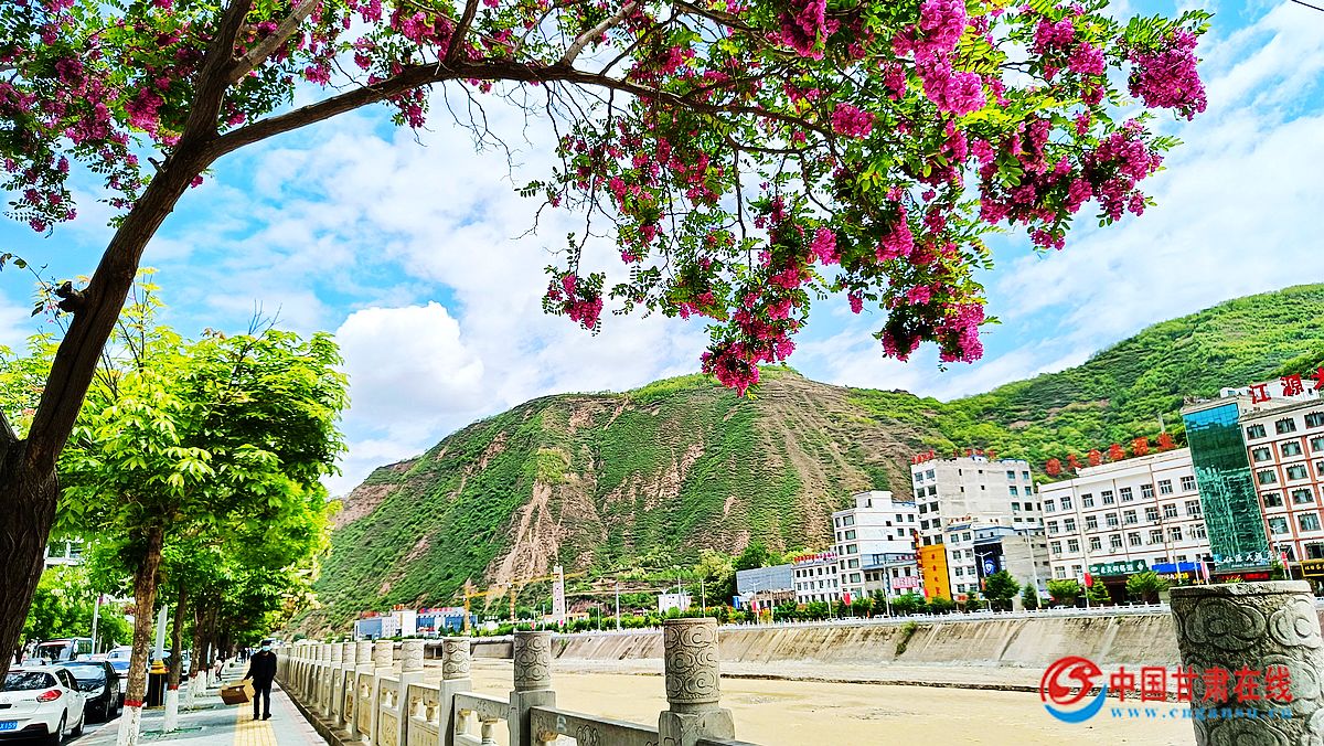 中国甘肃在线宕昌讯 盛夏时节,漫步宕昌县城乡,新鲜的空气扑面而来,清澈的岷江水面上,群鸟戏水,两岸山峦叠翠,绿色长廊,繁花似锦,尽显“河畅、水清、岸绿、景美、人和”的诗情画意。近年来,宕昌县把加强河道采砂清理整治作为创建“水生态文明城市”,