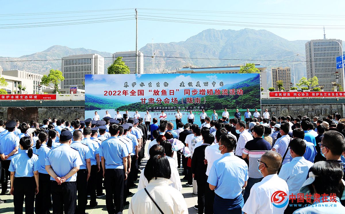 中国甘肃在线武都讯(通讯员 胡本平 李剑超)6月6日,围绕“养护水生生物,建设美丽中国”的主题,2022年全国“放鱼日”甘肃同步增殖放流活动在陇南武都举行。此次放流活动投放重口裂腹鱼苗56万尾,有效恢复土著鱼类种群数量,维护了生物多样性,对