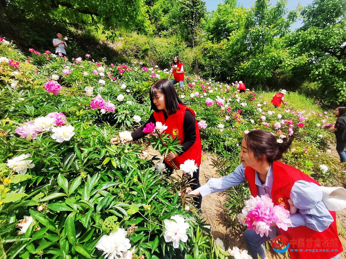中国甘肃在线两当讯(通讯员:张云霞)五月芍药,花开正艳!走进两当县站儿巷镇南坪村的芍药花田内,数十亩芍药亭亭玉立,次第开放,已进入采切芍药鲜花的好时节。 花田里,一朵朵盛开的芍药在阳光下随风摇曳,微风过处,花香醉人,沁人心脾。花农们依次排列