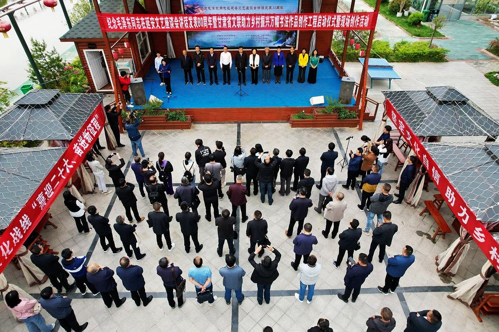 中国甘肃在线成县讯 为纪念毛泽东同志《在延安文艺座谈会上的讲话》发表80周年,5月24日上午,甘肃省文联助力乡村振兴万幅书法作品创作工程启动仪式暨现场创作活动在成县举行。成县是一座文化灿烂的历史名城,文化底蕴厚重,特别是书法文化,在成县至少