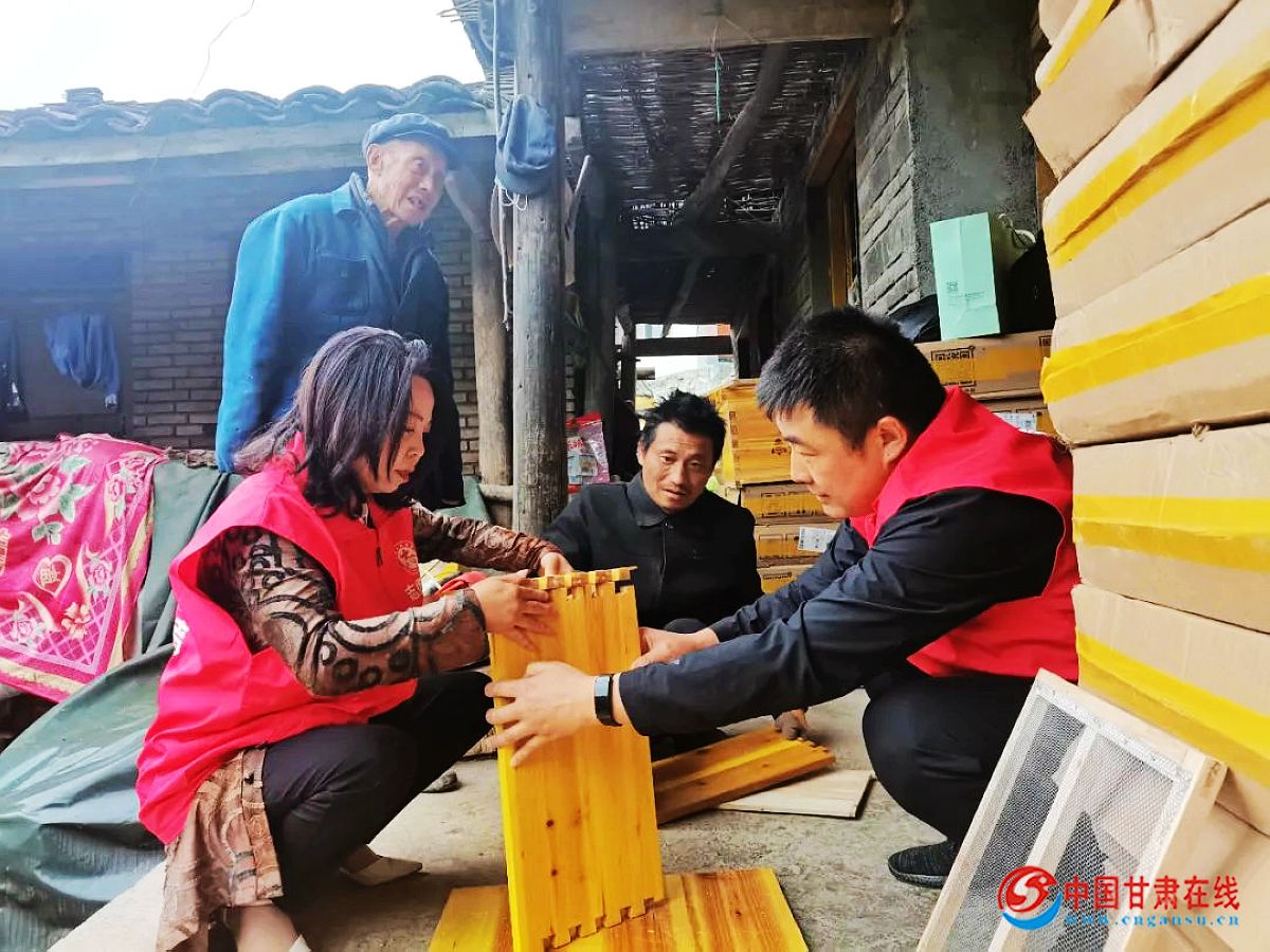 中国甘肃在线武都讯(通讯员焦小菊)5月18日,陇南光明公益联合会、武都区志愿服务联合会在高家坝村高家山四社开展“助残养蜂致富计划”公益项目活动,携手社会各界爱心人士为该村残障人士高宝生捐赠蜂箱40个及摇蜜机、饲养器等配套设备。活动现场,志愿