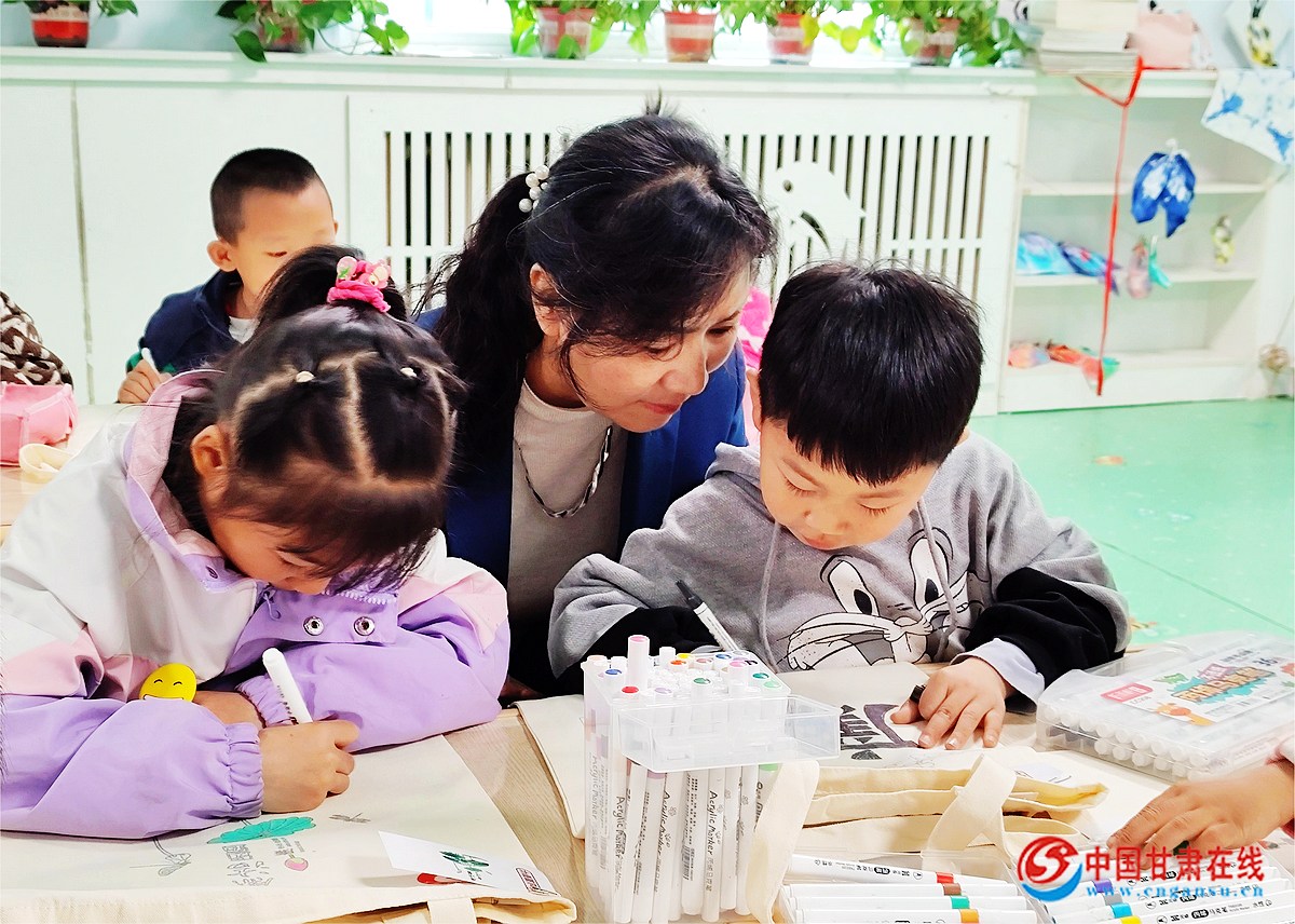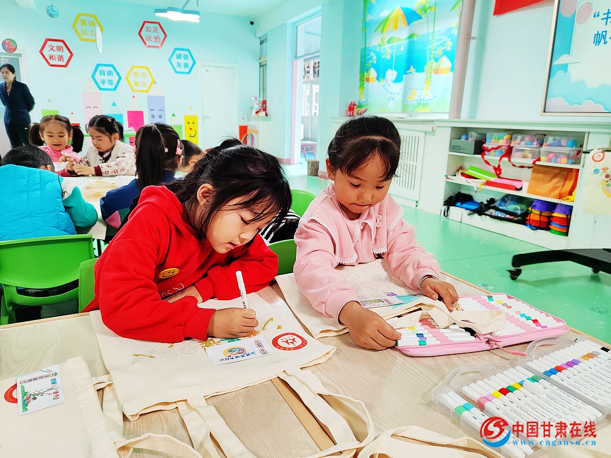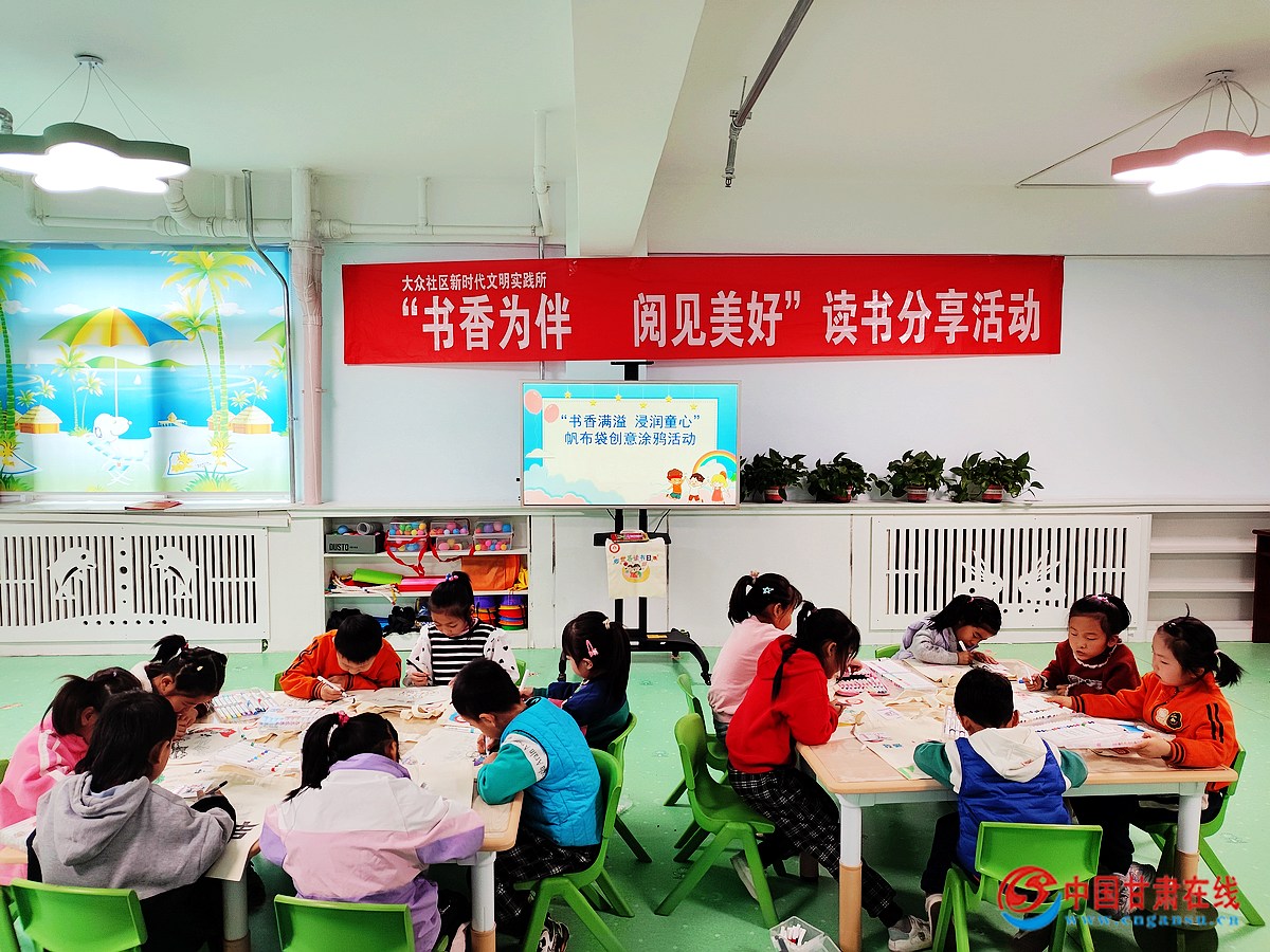 中国甘肃在线嘉峪关讯(通讯员:王洁 周丽梅)春风送暖百花开,恰是读书好时节。为进一步营造浓厚的读书氛围,引导辖区幼儿共同感受读书的快乐,养成“爱读书、读好书、多读书”的良好习惯,近日,嘉峪关市钢城街道大众社区开展“书香满溢 浸润童心”帆布袋创意涂鸦活动。