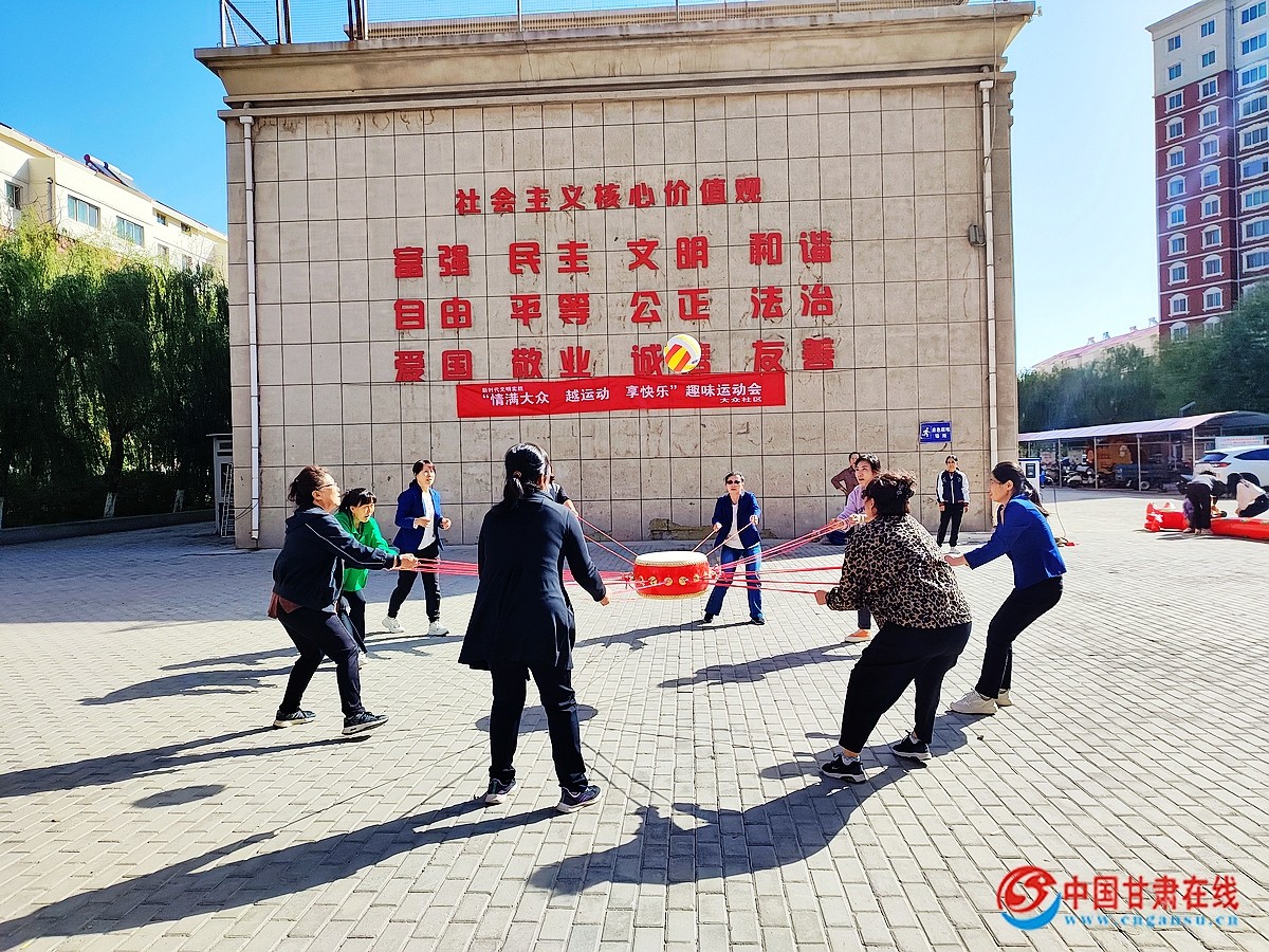中国甘肃在线嘉峪关讯(周丽梅、王洁)为庆祝中华人民共和国成立75周年,贯彻落实全民健身计划,推动全民健身与全民健康深度融合,9月9日,嘉峪关市钢城街道大众社区组织辖区居民开展“越运动、享快乐”社区运动会,提高广大群众的健身热情和身体素质,形成全社会共同参与的的和谐社区氛围。