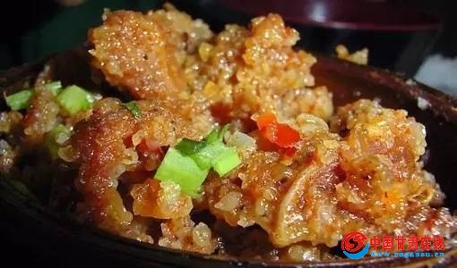 甘肃省嘉峪关市粉蒸牛羊肉,有1000多年的历史,以鲜肥牛、羊肉和面粉为原料,花椒、茴香等十三种西部产之调料磨粉腌制入味后,经武火、文火蒸制而成故称“粉