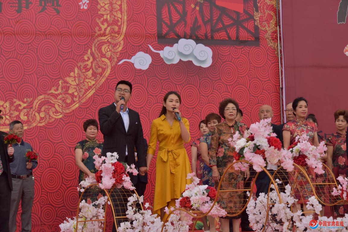 婚礼当天,来自兰州、酒泉、天水及金昌周边的25对和北京、成都、重庆、西安等地的27对金婚、银婚老年夫妇,携手登上典礼台。在众多亲朋好友的见证祝福中,这些