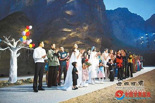 金秋时节,由著名国际品牌皮尔·卡丹策划组织的2017年春夏时装发布会在风景秀丽、雄浑粗犷的黄河石林国家地质公园主景区饮马沟大峡谷里精彩上演。奇峰峡谷之间,时尚元素与自然风光完美融合,展现出别样的西部风情。(记者孟捷)(来源:甘肃日报)