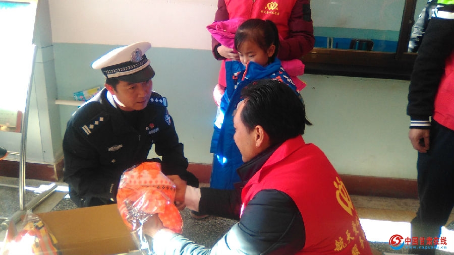 12月4日中午,由金塔县公安局交警大队和航天爱心志愿者协会在航天广场举行了“壹基金温暖包”发放仪式,为东大街小学等学校的10名贫困儿童送去由“壹基金”公益组织提供的“壹基金温暖包”。这次发放的“壹基金温暖包”每个价值365元,包含有羽绒服、绒帽、围巾、手套、棉靴、新书包、绒毛熊以及美术套装文具等11件物品。一套套崭新的衣服,一张张美丽的笑脸,相信在温暖包的陪伴下,孩子们会度过一个温暖的冬天。