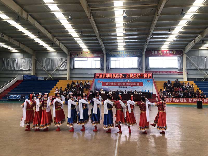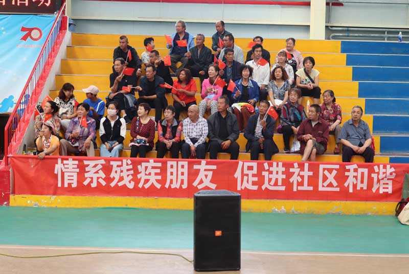 在体育活动中心,组织残疾人开展了趣味文体活动,观看了文艺演出。在文体活动中,他们各显身手,活力四射,热情高涨,展现出残疾人积极进取的良好生活状态。现场气氛十分热烈,仿佛置身于一个无比和谐融洽的大家庭中,场面热闹非凡,节目精彩纷呈,让他们忘记了自身缺陷,“玩”得爱不释手,看的“目不暇接”。