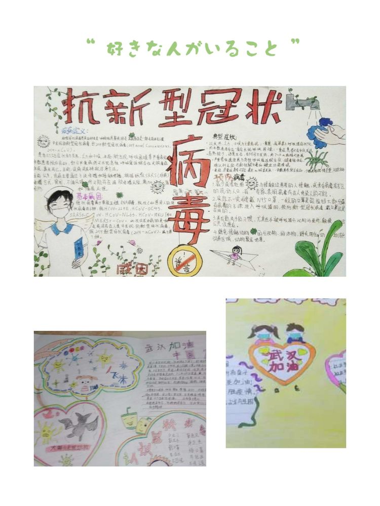 全校师生上下齐心,众志成城。班主任通过微信、QQ等方式积极向学生们宣传疫情预防知识;让学生们了解疫情防控前线一群群可敬可爱、无私奉献的医护人员、解放军、公安民警、志愿者……他们不畏惧危难,奔波在一线,坚守岗位,舍小家,守大家的家国情怀;引导学生们在特殊时期,“宅”在家中,做好自身防护的同时合理安排假期生活,加强锻炼,通过手抄报、朗诵、写作、阅读、绘画、书法、做家务等多种活动来丰富充实假期生活。