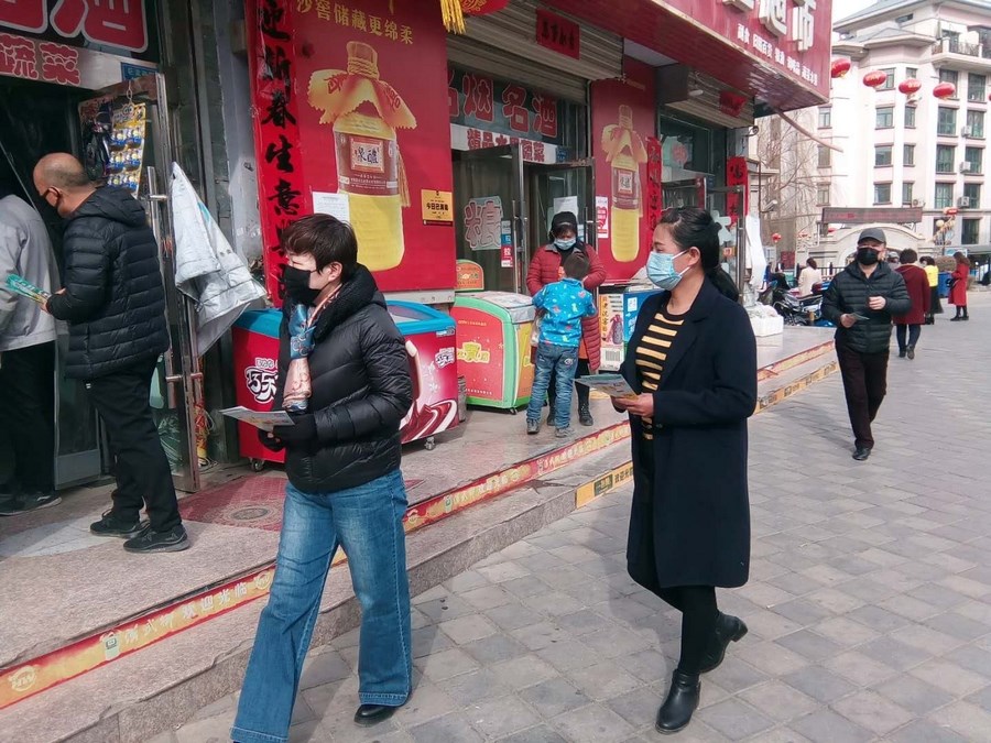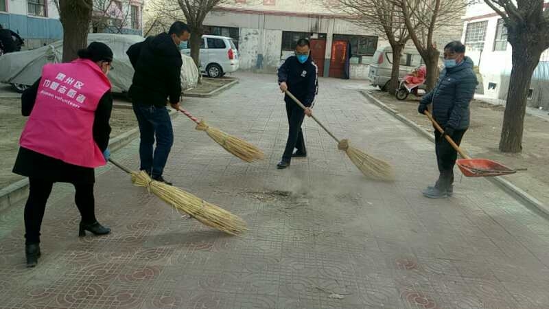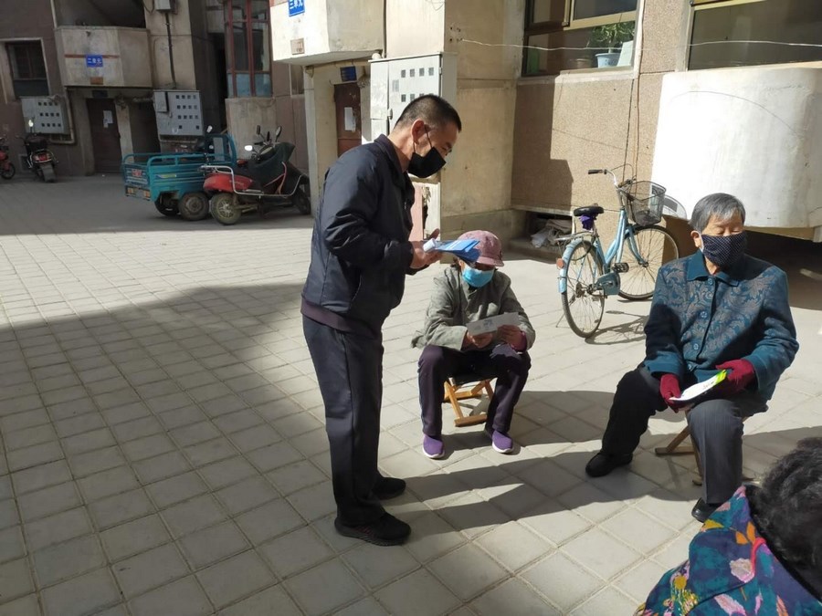 活动以“为疫情检测点送温暖、为重点人员送服务、为商业门店送信息、为公共场所送健康、为居民楼院送清洁”五送为内容,活动开始,社区党总支组织全体党员志愿者列队面对着鲜红的党旗,举起右拳重温入党誓词。活动现场,党员志愿者佩戴党徽,身穿红马甲、手持党旗,热情高涨、干劲十足,充分发扬“不怕累、不怕脏,不怕苦”的精神,参与卡点值守工作,全面排查并登记信息,对进出楼院的人员严格进行身份核实;向来往居民发放《关于辖区单位和商业门店疫情防控告知书》《致楼院常住居民的一封信》和防疫安全知识等各类宣传资料,并耐心解难答疑,悬挂横幅,张贴疫情宣传信息;对小区楼院的路面、花坛及卫生死角进行了彻底打扫,对楼梯间、单元门把手、进出大门通道等人群容易接触到的位置进行严格的消毒杀菌工作;在民族团结广场利用“移动音箱,小喇叭”积极劝返聚集聊天、玩闹、打牌人员;根据隔离居民“点菜”、党员志愿者进行“接单”、“跑腿”服务,有效保障了居家隔离留观人员的基本生活需求。