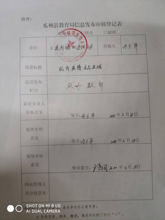 疫情发生以来,在县教育局的统一安排部署下,全体教师众志成城,抗击疫情,把打赢疫情防控阻击战作为当前的重大政治任务。为确保各项防控措施和工作要求不折不扣落实到位,维护师生生命安全和身体健康,为打赢新型冠状病毒感染的肺炎疫情防控战提供坚强纪律保障。3月18日,学区胡区长一行两人对我校疫情防控期间工作进行检查。
