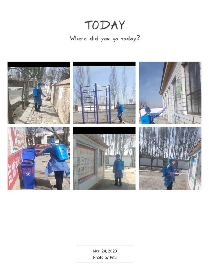 疫情期间学校把校园消毒安全工作放在首位,确保师生身体健康,学校安排专人每天放学后对全校性的校园卫生消毒,消毒人员对校园的所有办公室、教室内外、厕所、垃圾箱、校园外等进行了消毒,不放过一个死角,以保障全校师生有个健康、安全的学习、工作环境。