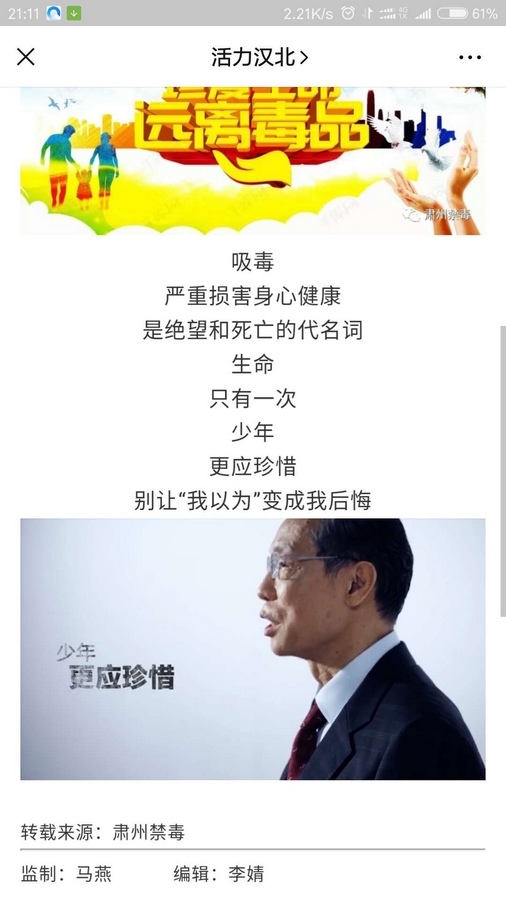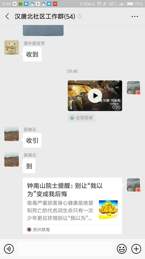 近期汉唐街北社区积极组织单位干部职工以及利用道德讲堂集中或自主收看相结合的方式观看了《别让“我以为”变成“我后悔”》禁毒公益宣传片,干部和群众通过微信朋友圈、社区公众号、社区工作群、抖音号推广此宣传片。